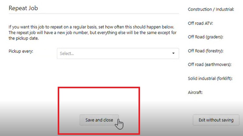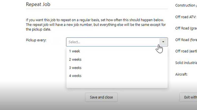 If you would like the job to repeat, select the dropdown menu next to ‘Pickup every:’ and choose how often you would like the job to repeat. If not, leave this section blank.