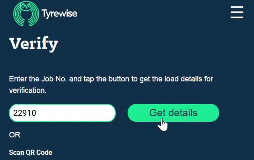 Enter the job number provided by the driver (example below) and click ‘Get details’.